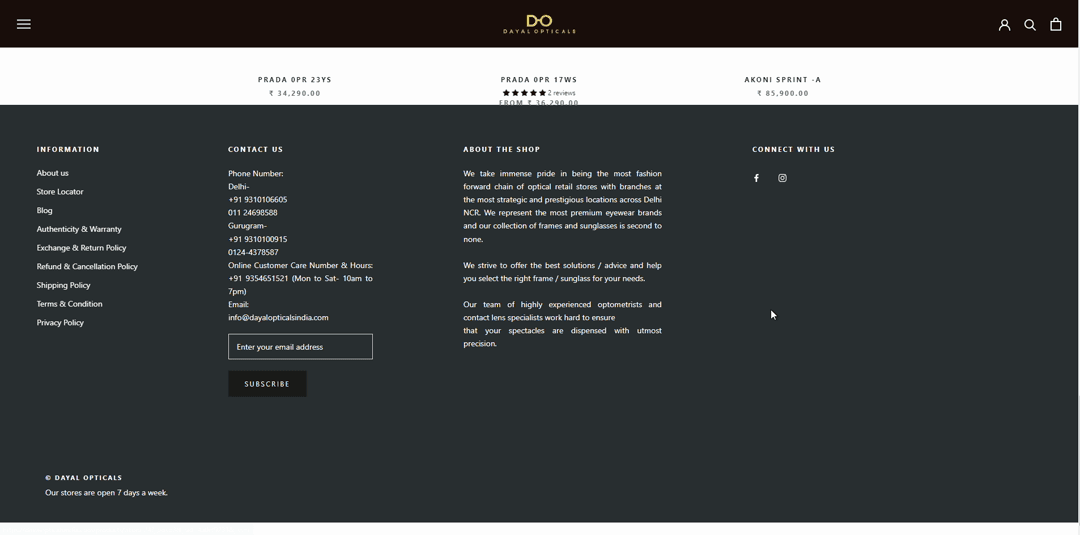 Dayal Opticals. Three generations. 18 boutiques. An online store redesigned to match the brand behind it.