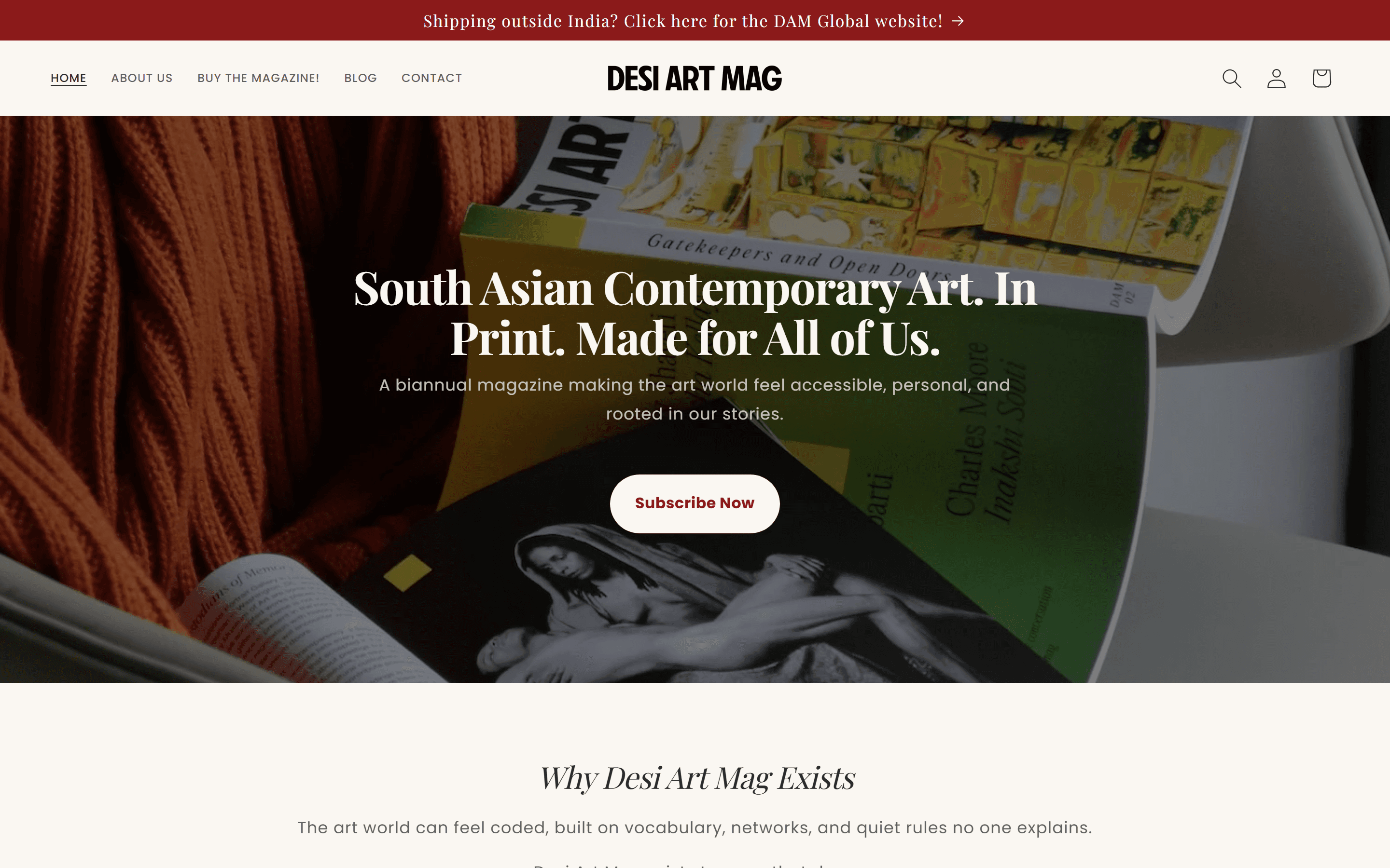 Desi Art Mag. 2 issues a year. 17 countries. Subscription commerce for a print magazine built on Shopify.